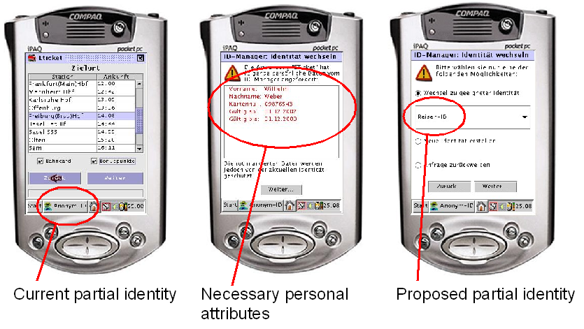 Every person has his own identity. This identity consists of person’s roles, e.g. while using government services a person is well known whereas while he is shopping, only some personal attributes of him are needed. These different kinds of identity are represented by partial identities. A partial identity is a set of personal attributes of a user whereas a user can have several partial identities. Close to the physical world, a user changes his partial identity in computer networks while thereby varying between being anonymous and identifiable. Such a change depends on the situation. By this means, a user protects his privacy and at the same time is able to build up a reputation towards his communication partner with respect to his current partial identity.