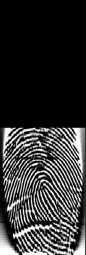 The RiTech 128 MB BioSlimDisk proved to be easier to spoof - using a gelatin spoof worked nearly all the time. Another spoofing method for this device uses the latent fingerprint of the previous user. If such a fingerprint is present and of sufficient quality, the device can easily be spoofed by breathing on the sensor, thereby activating the latent fingerprint. The device does get warm after a short period of use, after which the breathing technique does not work as well anymore. In such a case a can of Airduster (e.g. from Electrolube) held upside down can be used to spray compressed gas on the sensor, which rapidly cools the sensor and activates the latent fingerprint as well (see ).