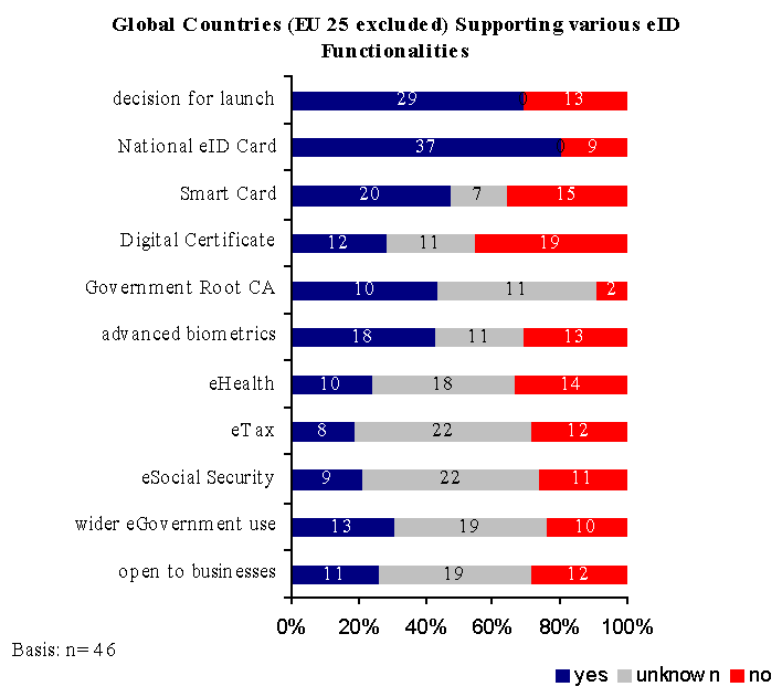 Figure : Number of Global Countries (EU 25 excluded) Supporting various eID Functionalities