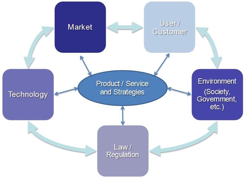4. Environment perspective: The environment perspective especially deals with qualitative factors, such as the impact of the media, the government, and society in general on the other perspectives. To this regard, environmental effects on the other perspectives can be identified, leading to a holistic view on the more intangible factors. An example could be the general opinion and discussion going on towards the usage of a technology, such as surveillance using mobile communications technology.